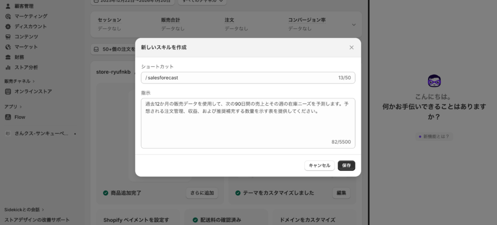 Shopify 公式情報:https://help.shopify.com/ja/manual/shopify-admin/productivity-tools/sidekick/skills
